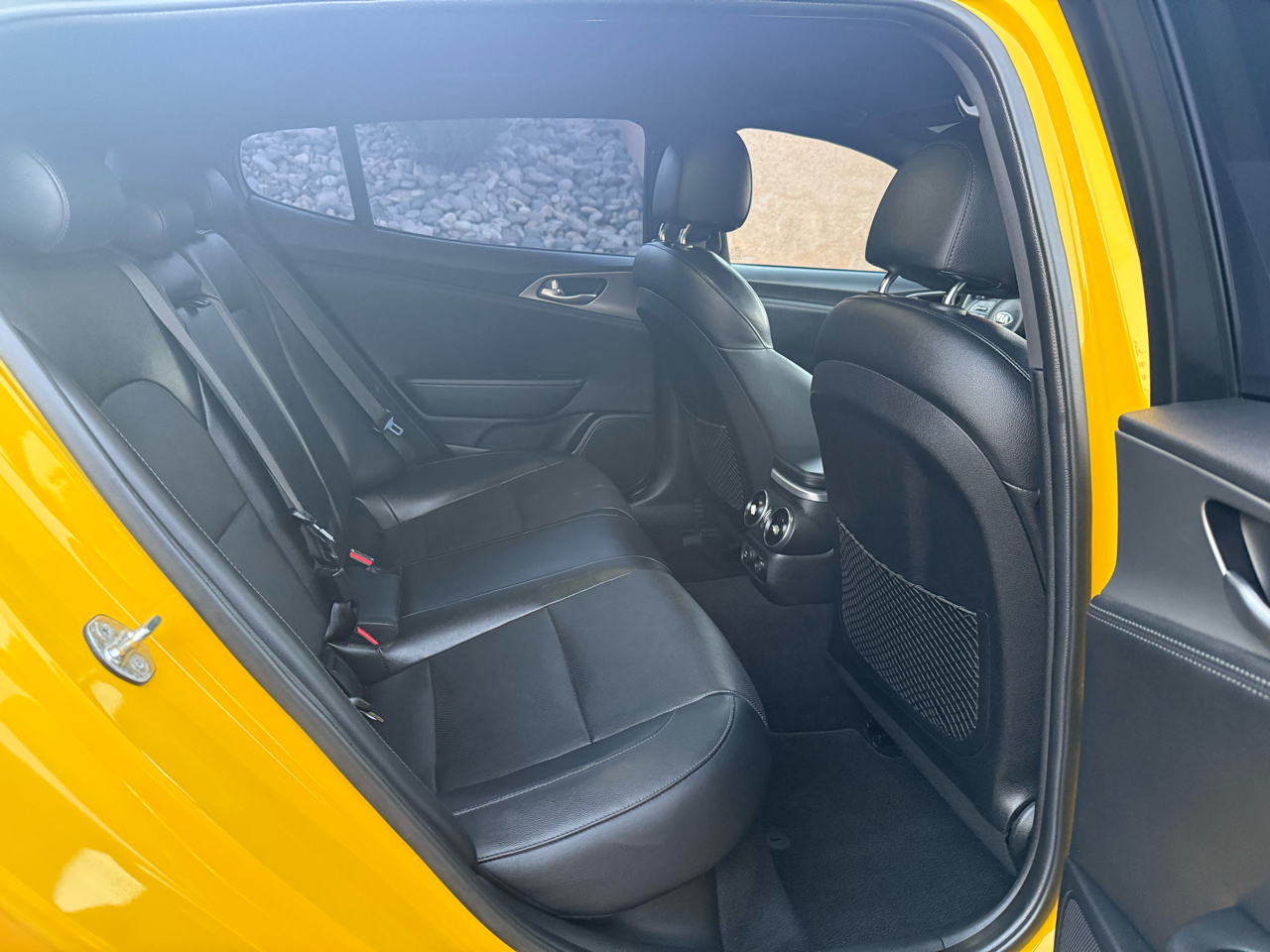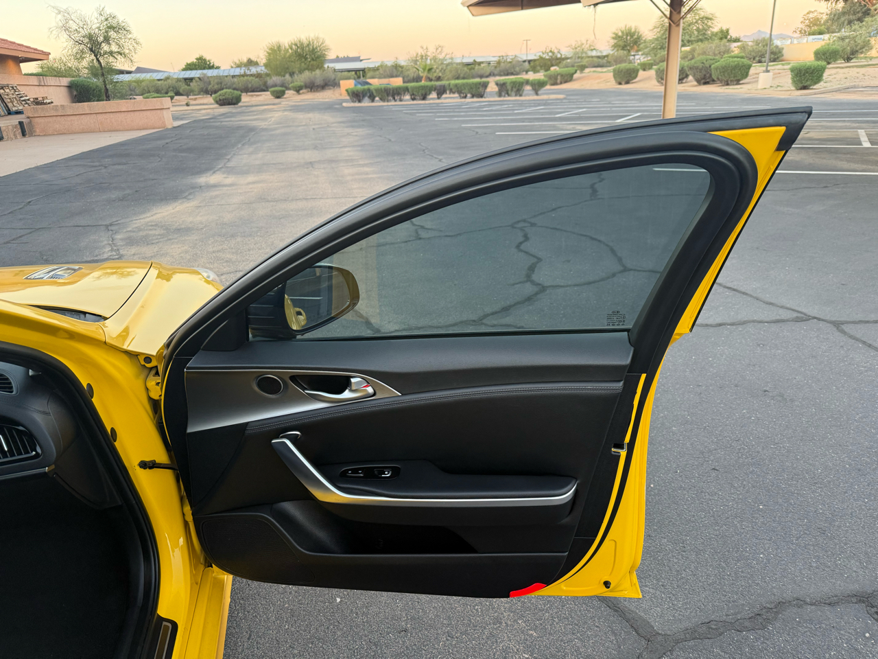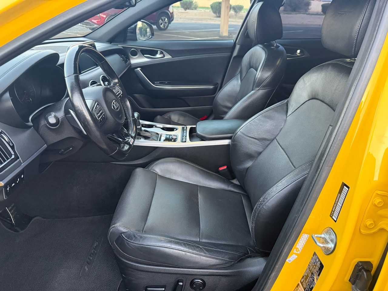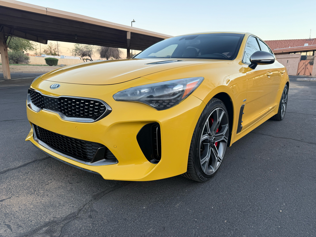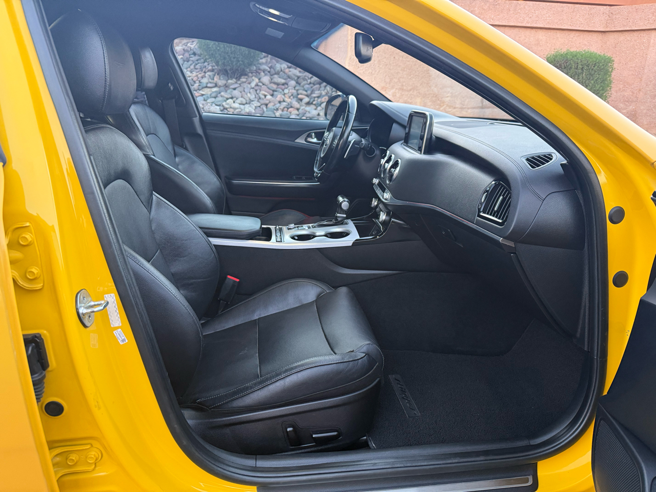 Turn heads with this stunning 2018 Kia Stinger finished in a bold yellow exterior paired with a sleek black leather interior. Powered by a 3.3L twin-turbo V6 engine, this rear-wheel-drive sport sedan delivers an impressive blend of performance, comfort, and style.