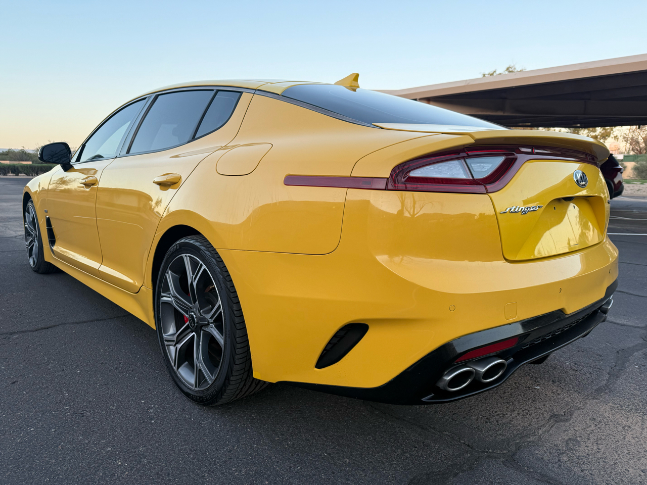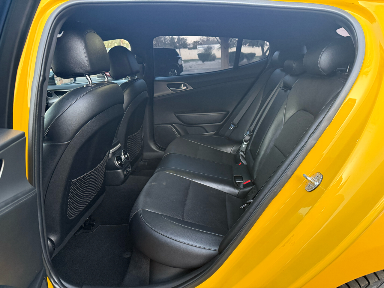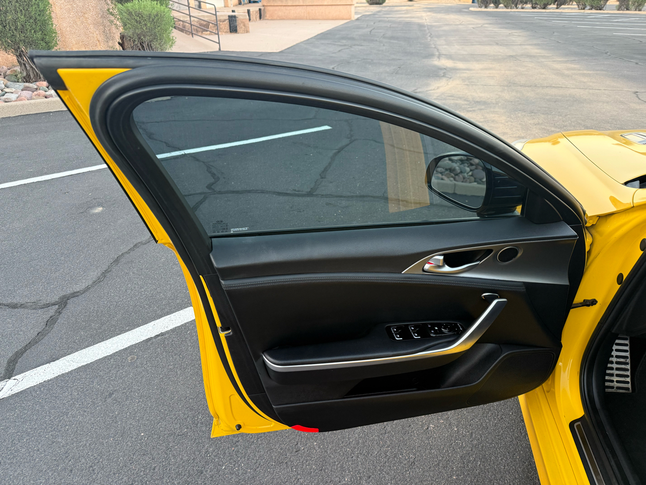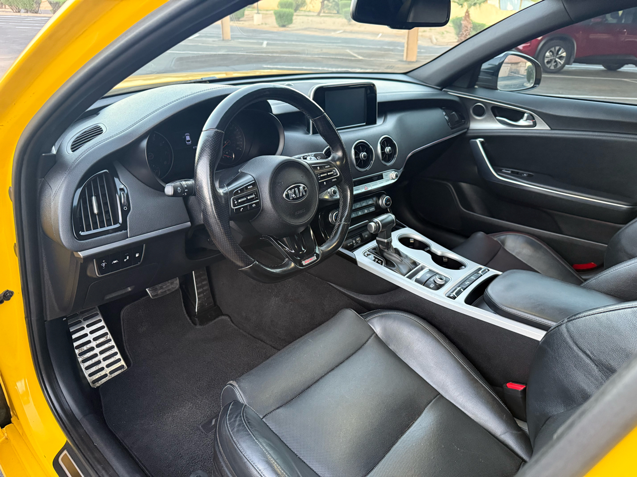 Turn heads with this stunning 2018 Kia Stinger finished in a bold yellow exterior paired with a sleek black leather interior. Powered by a 3.3L twin-turbo V6 engine, this rear-wheel-drive sport sedan delivers an impressive blend of performance, comfort, and style.