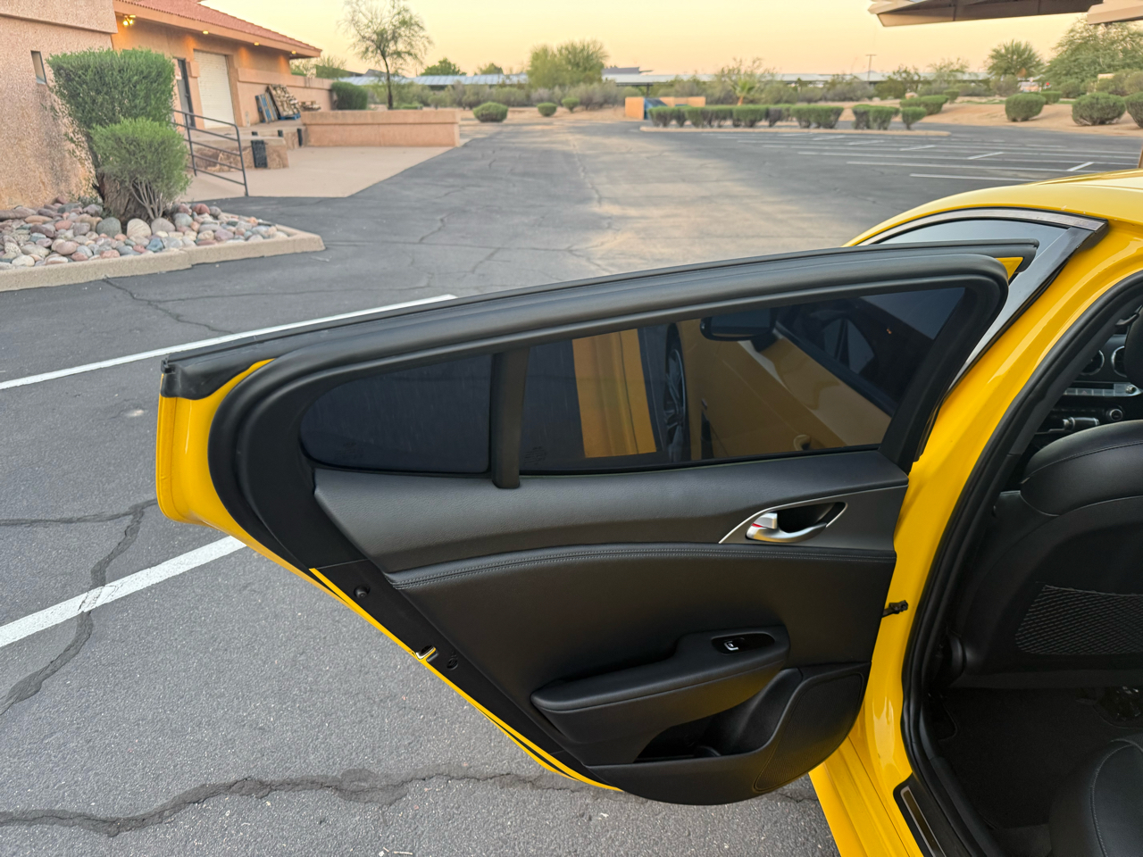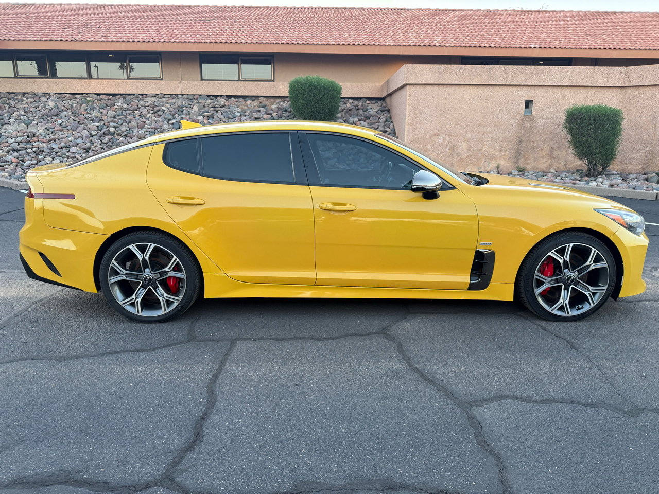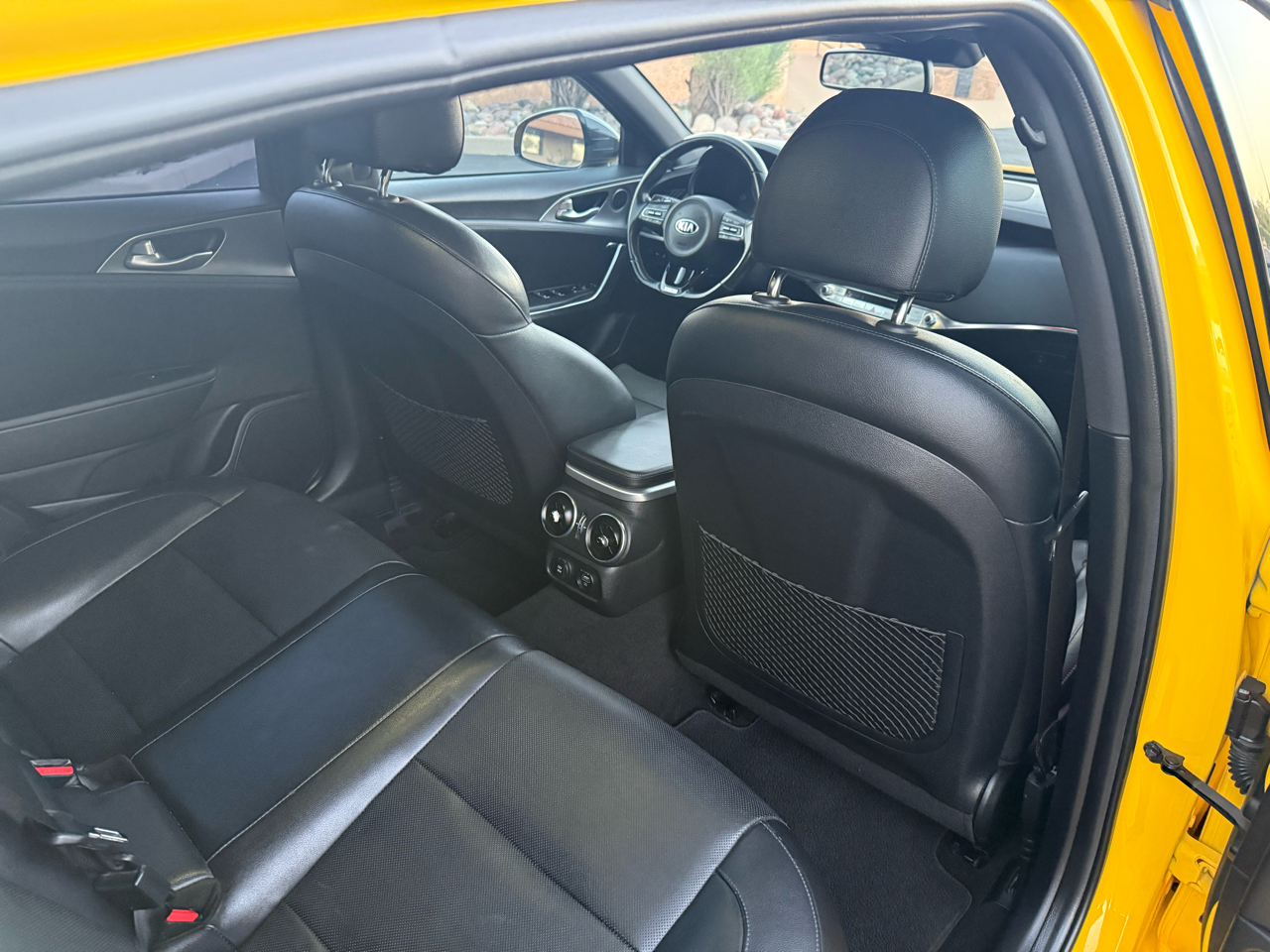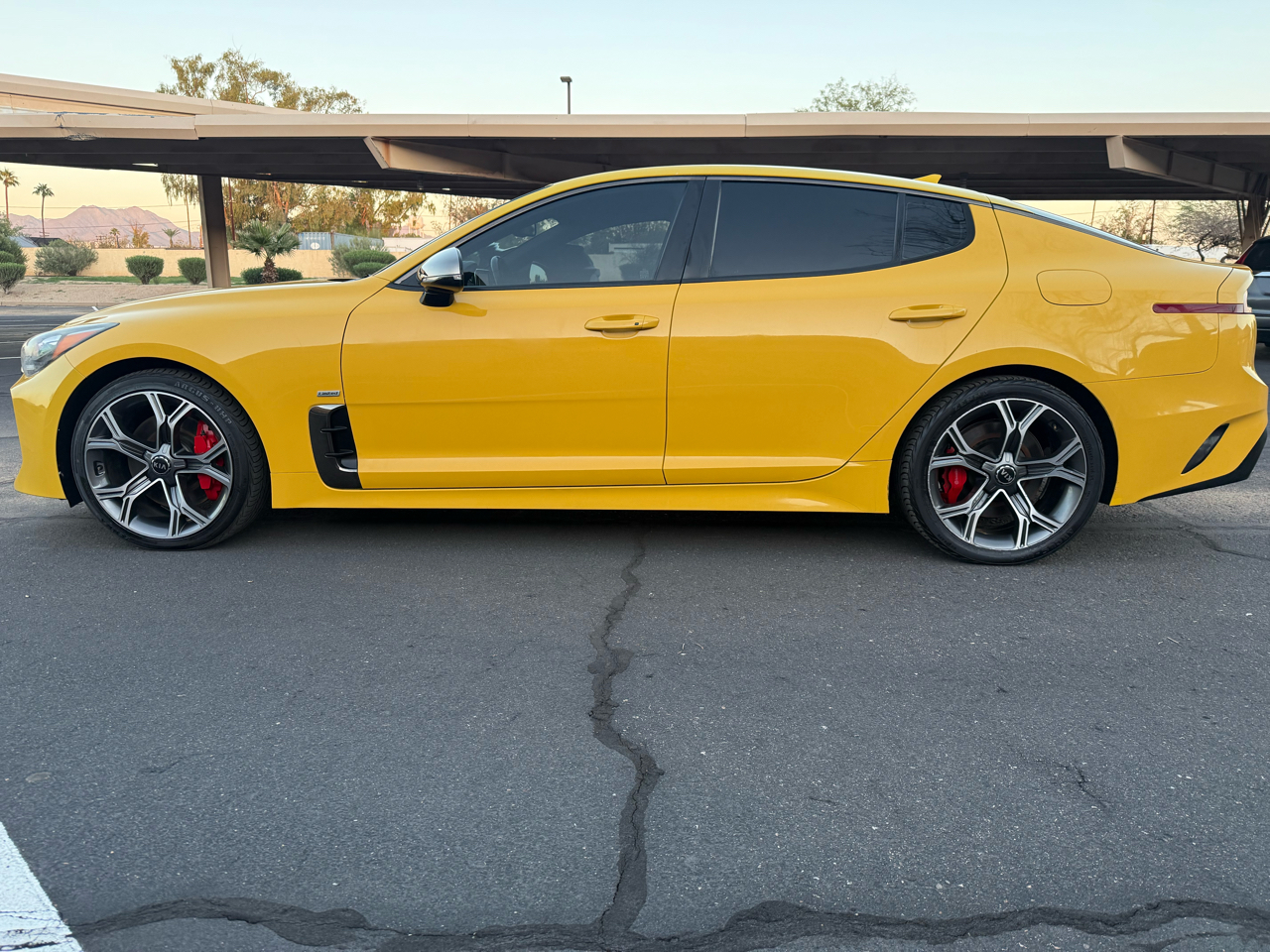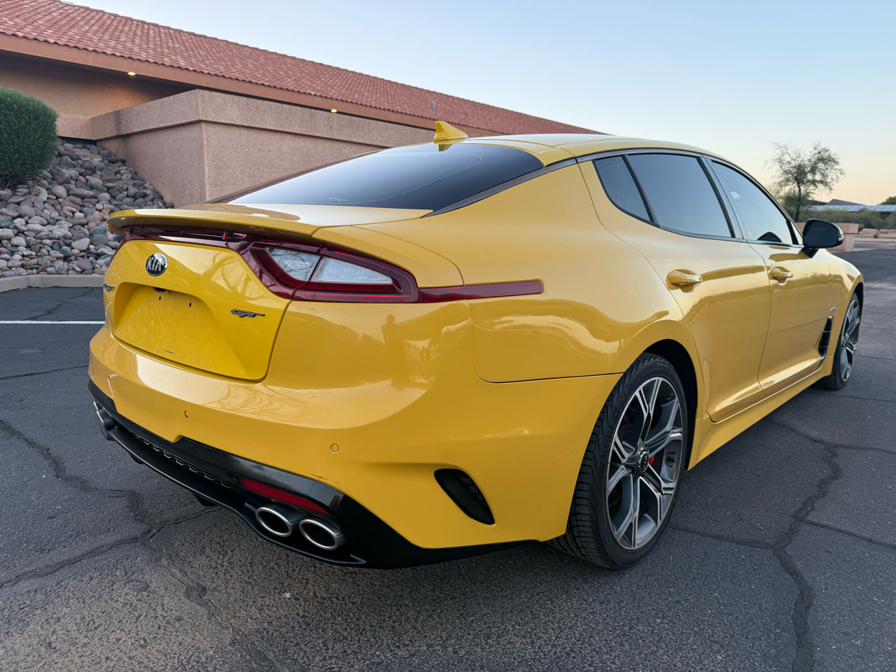 Turn heads with this stunning 2018 Kia Stinger finished in a bold yellow exterior paired with a sleek black leather interior. Powered by a 3.3L twin-turbo V6 engine, this rear-wheel-drive sport sedan delivers an impressive blend of performance, comfort, and style.
